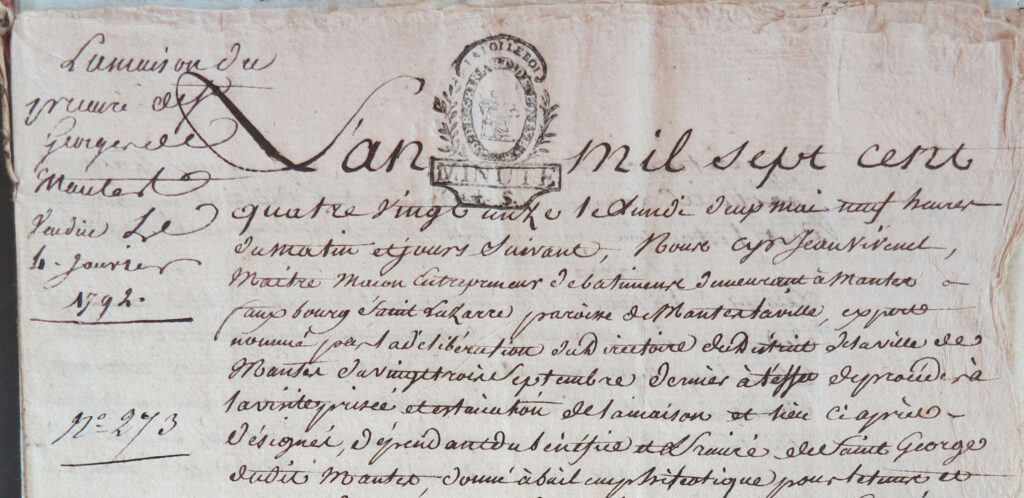 La vente aux enchères se fait aux feux, c’est-à-dire à la bougie : on ne peut surenchérir que le temps que la flamme est allumée. Mais G. BRISSET a peu de concurrence et il remporte la vente pour la somme de 4725 livres, au profit de François Louis FOURNIER, vitrier, habitant Mantes, dès le deuxième feu.