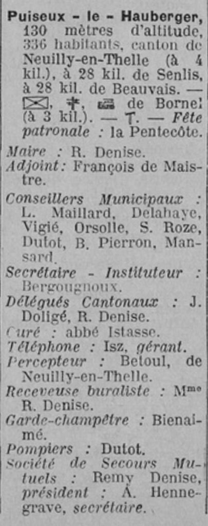 C’est sur le recensement de Puiseux-le-Hauberger en 1926 qu’il apparaît pour la première fois comme charcutier et patron, sa femme travaillant avec lui.